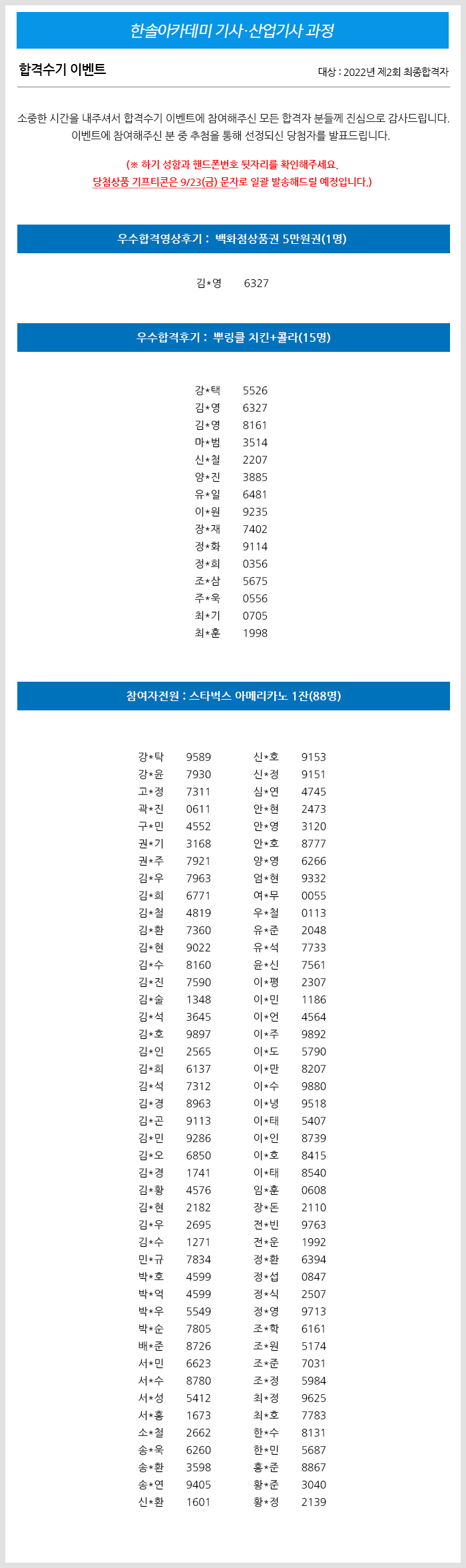 2022년 제2회 건축/전기/토목/건축설비/공조냉동기계(산업)기사 합격수기 이벤트 당첨자 발표